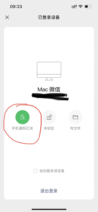 点击它,可以打开以下界面,圈出来的按钮即可开/关当电脑微信在线时,手机微信消息通知。